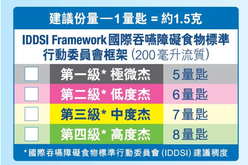 維持營養健康 增稠劑 原味 含有澱粉(玉米)的食物增稠劑,適用於患有吞嚥障礙病人的膳食管理。 一分鐘內便能與食物混和,做法快速,質地順滑,保持安全一致的黏稠度 原味配方,不會影響食物和飲品的味道 可與冷熱食物和飲料混合,並大量製作 可根據國際吞嚥障礙食品標準行動委員會(IDDSI)建議指引服用 令食物賣相更佳 於冷藏及解凍後保持穩定,翻熱後仍能保持其黏稠度和形狀 以澱粉質為基礎的食物和飲品即時增稠劑,供吞嚥困難人士使用 用法: 只需簡單撒上需要的凝固樂™食物凝固粉份量,便能令液體或糊狀食物變稠。 用叉子或打蛋器快速攪拌,直至達到理想的黏稠度。 只需幾分鐘,食物就能變成奶糊狀,可供隨時享用。如食物質地變得過稠,只需加入少量液體(水、果汁、奶)就可以再次液化。 口味: 原味 規格: 225克罐裝