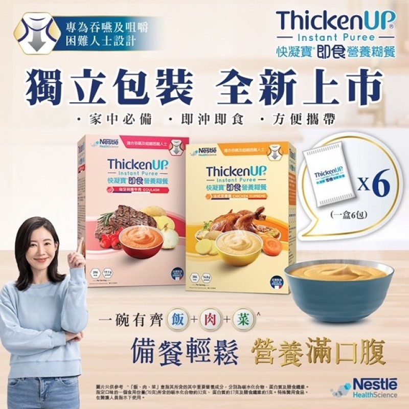 雀巢 快凝寶 THICKENUP 即食營養糊餐 70g*6包 (匈牙利燴牛肉 / 法式至尊雞)